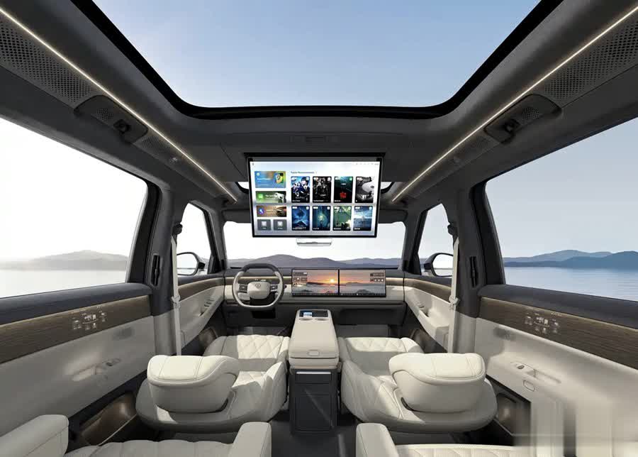 乘用性表现方面,毕竟有着5207/1997/1810mm的车身三围以及3070mm的轴距,这使其车内空间自然不会显得局促。而包含第二排双独立座椅的6座布局,结合21.4英寸后排吸顶娱乐屏等配置,预计其车内并不欠缺高端化乘用舒适性。