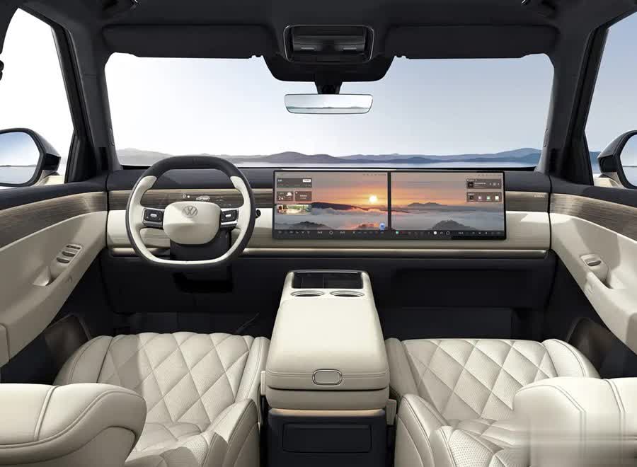 较为可惜的是,目前上汽大众ID.ERA 9X的内饰实拍依然尚未正式曝光;但从先前的官图来看,它的车内布局结构显得比较沉稳且简约。不过,凭借着包含中控屏与副驾驶娱乐屏的15.6英寸联屏设计以及别具一格的仪表盘投影,却能为其车内注入符合时代审美的科技氛围,且不会让其车内布局显得老气。此外,依照其车头的高塔激光雷达来看,预计其智能辅助驾驶系统也会是比较高阶的程度。