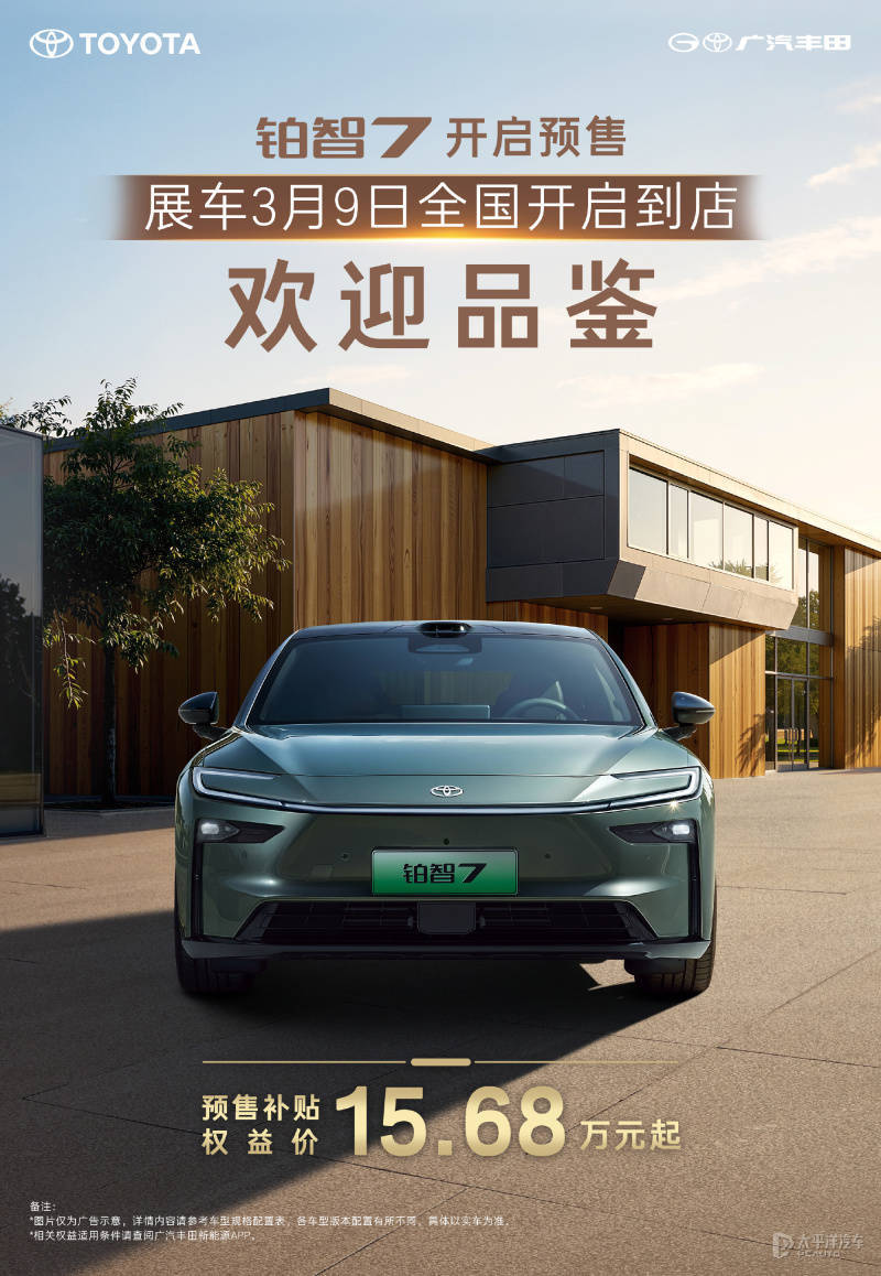 【太平洋汽车 汽车动态】3月9日,我们从广汽丰田官方渠道获悉,广汽丰田旗下全新旗舰纯电轿车——铂智7正式在全国范围内抵达各大经销商门店。新车于3月5日开启预售,共推出五大版本,最终预售权益价区间为 15.68万-20.98万元。