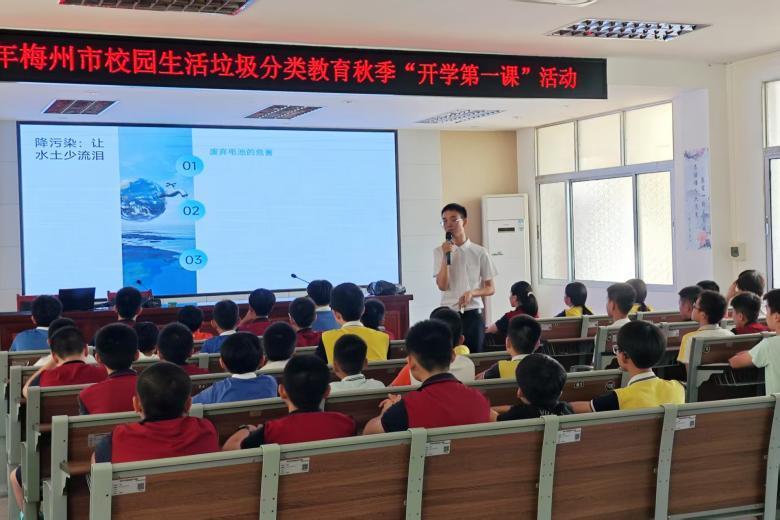 梅州市组织开展垃圾分类主题班会,穿插形式活泼的互动游戏,以“边学边玩”的方式引导学生在日常学习生活中培养分类意识。