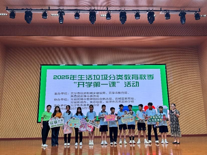 云浮市以“垃圾分类新时尚 绿色环保校园行”为主题组织开学第一课活动。