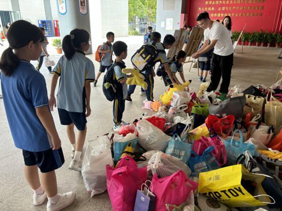佛山市在垃圾分类“开学第一课”主会场设置了旧衣物回收摊位。
