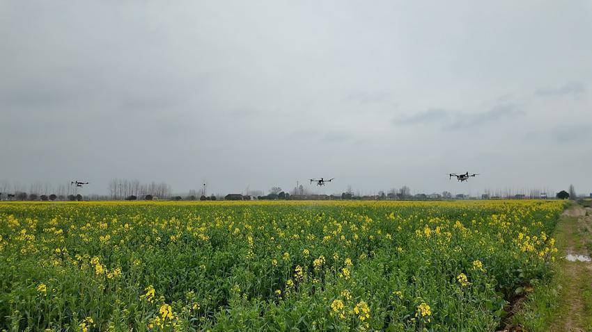 作业现场,多架植保无人机在连片的油菜田上空来回穿梭。在技术人员熟练的操作下,硼肥、磷酸二氢钾、氟唑菌酰羟胺等科学混配的药肥,被雾化均匀喷洒在油菜花蕊和叶片上。植保服务队将抢抓近期的有利天气,对久合垸乡片区的1万余亩油菜田进行无人机统防统治,实现药肥同施、提质增效。
