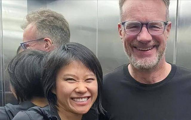可站在他身边的重庆妻子甘霖,依旧眉眼温婉、气色红润,身姿舒展风韵不减,两人同框反差大到像两代人。