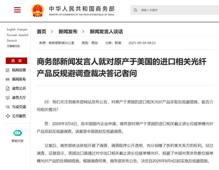 商务部新闻发言人就对原产于美国的进口相关光纤产品反规避调查裁决答记者问免费配资开户