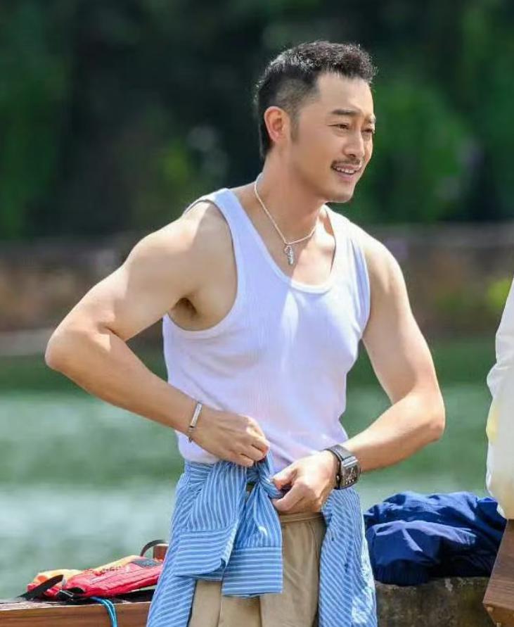 48 岁的晓明哥,在最近的《小城大事》里小秀胸肌,这种肌肉适中的身材刚刚好。